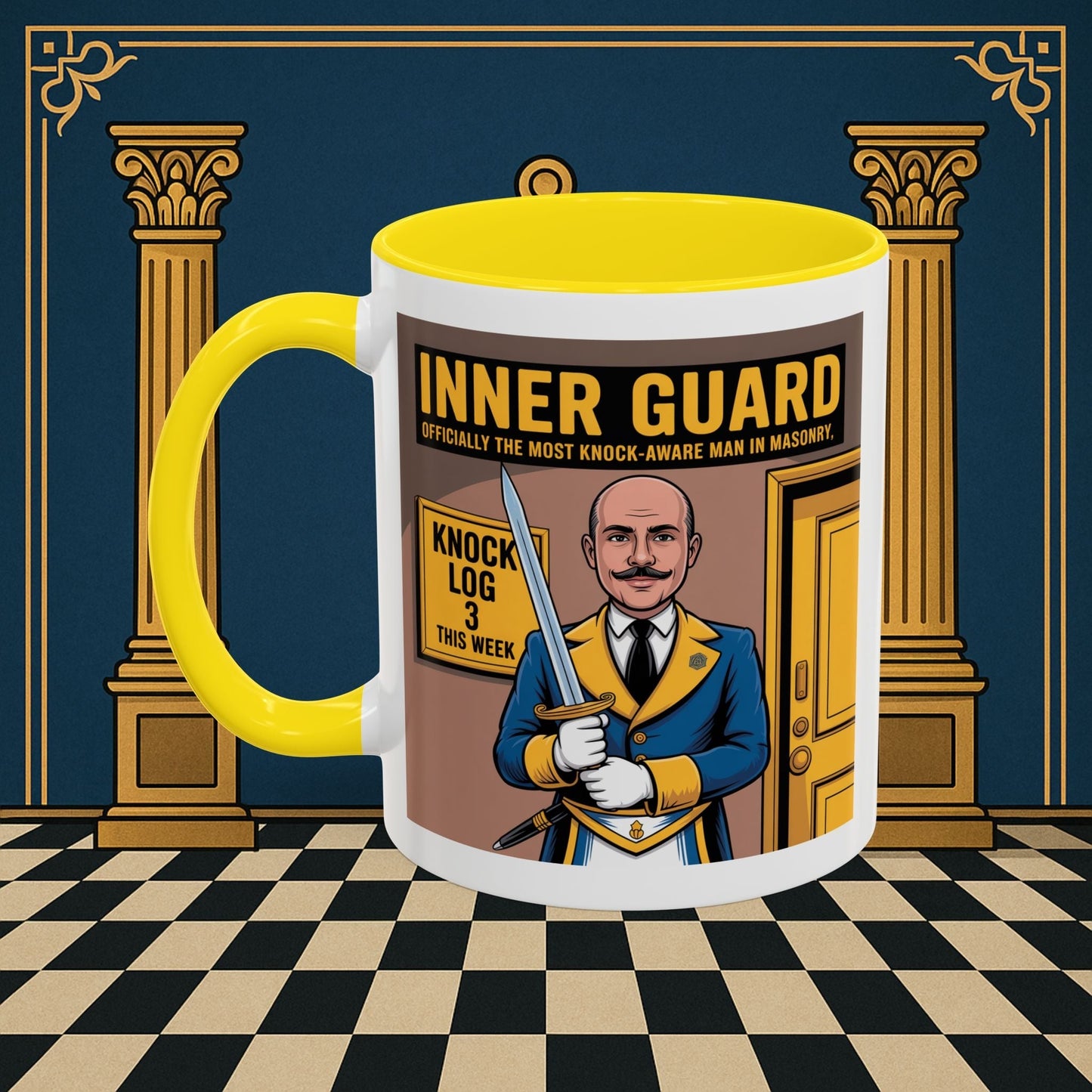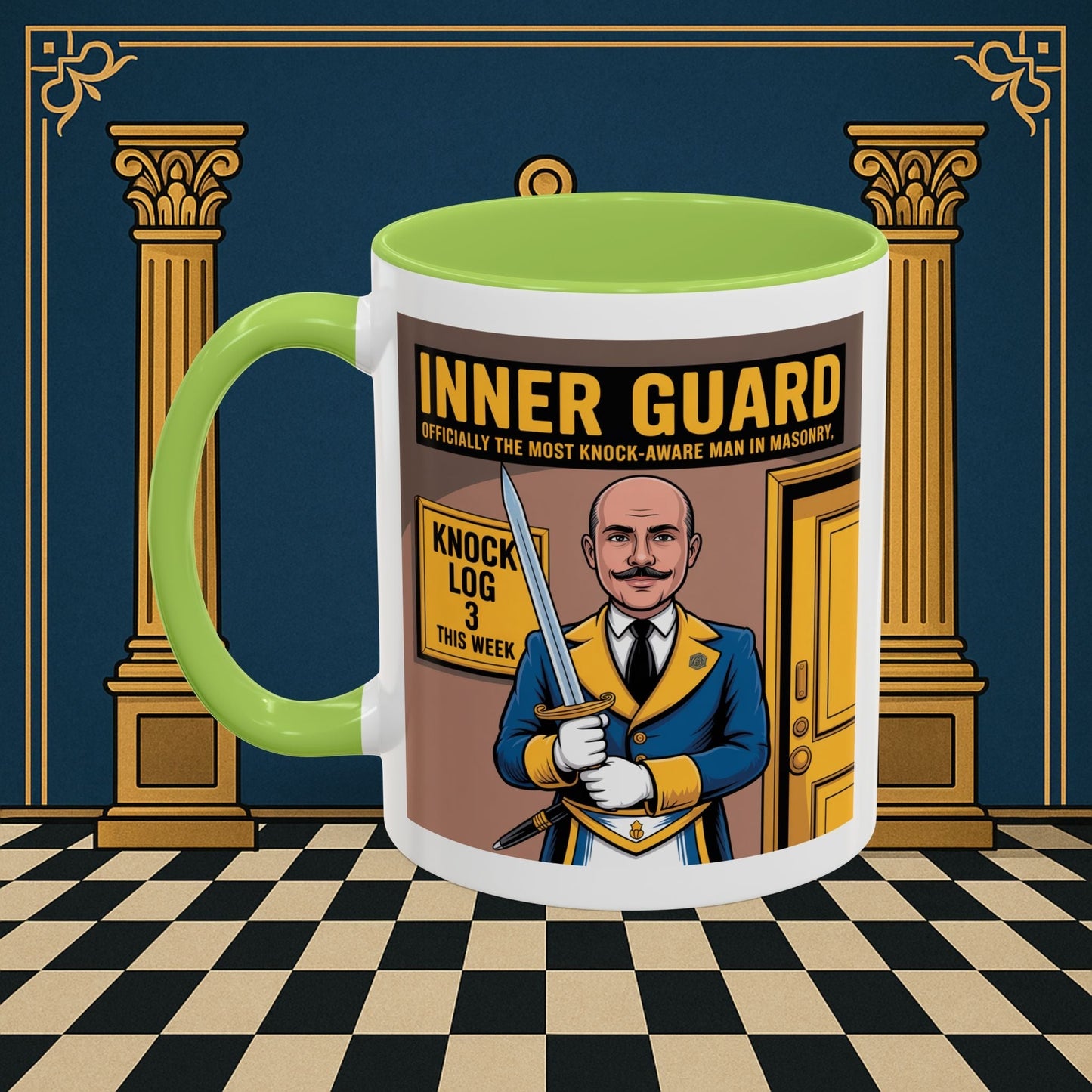 Premium Ready to Go Freemason Design | Accent Coloured 11oz Mug | The Knock Master | Inner Guard