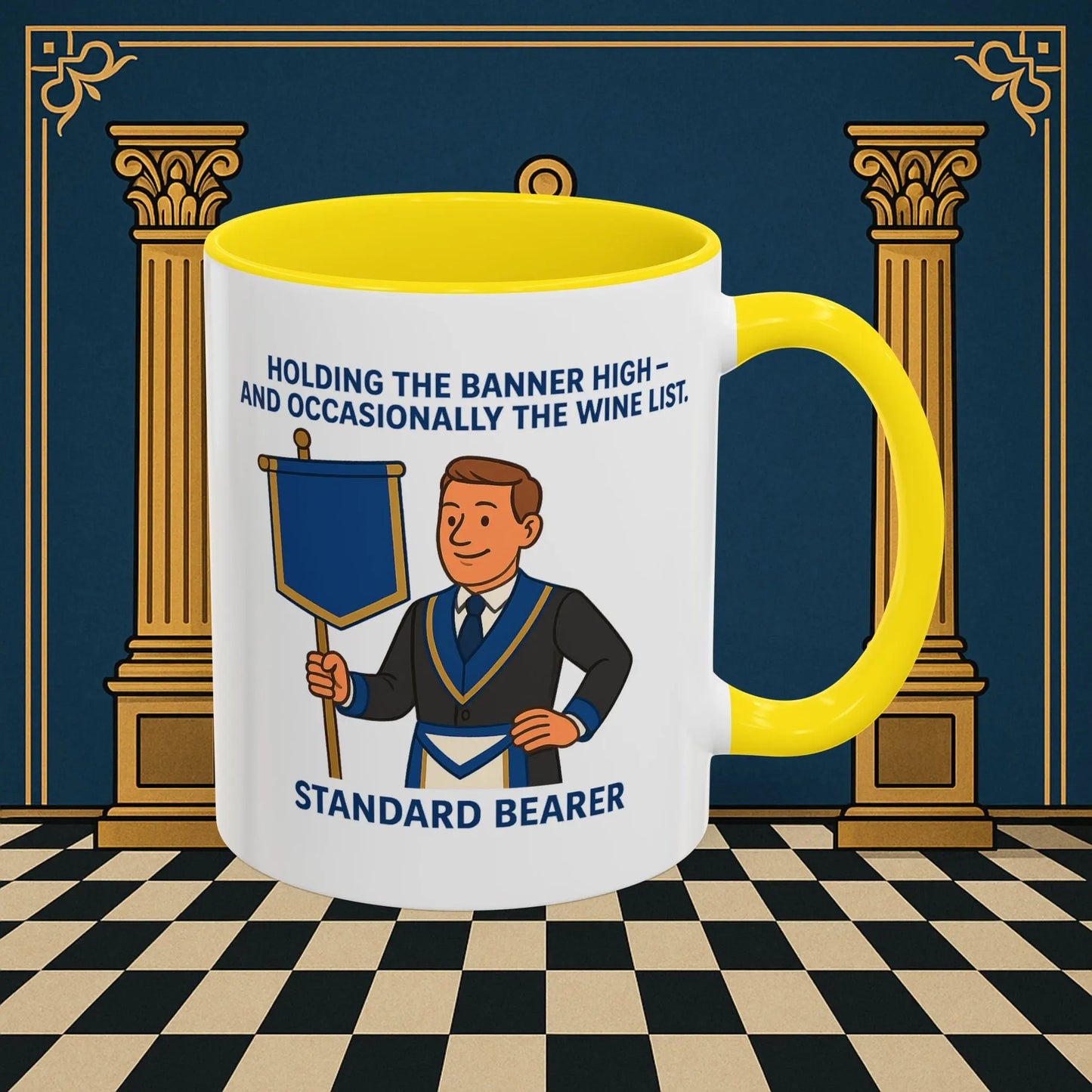 Premium Personalised Freemason Colour Rim Mug - Membership Officer Design Offering support and resources for newcomers