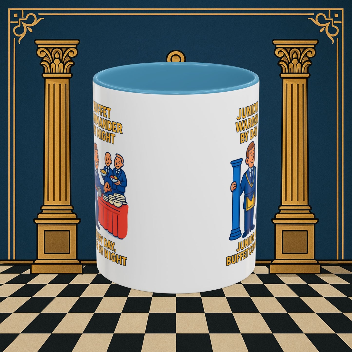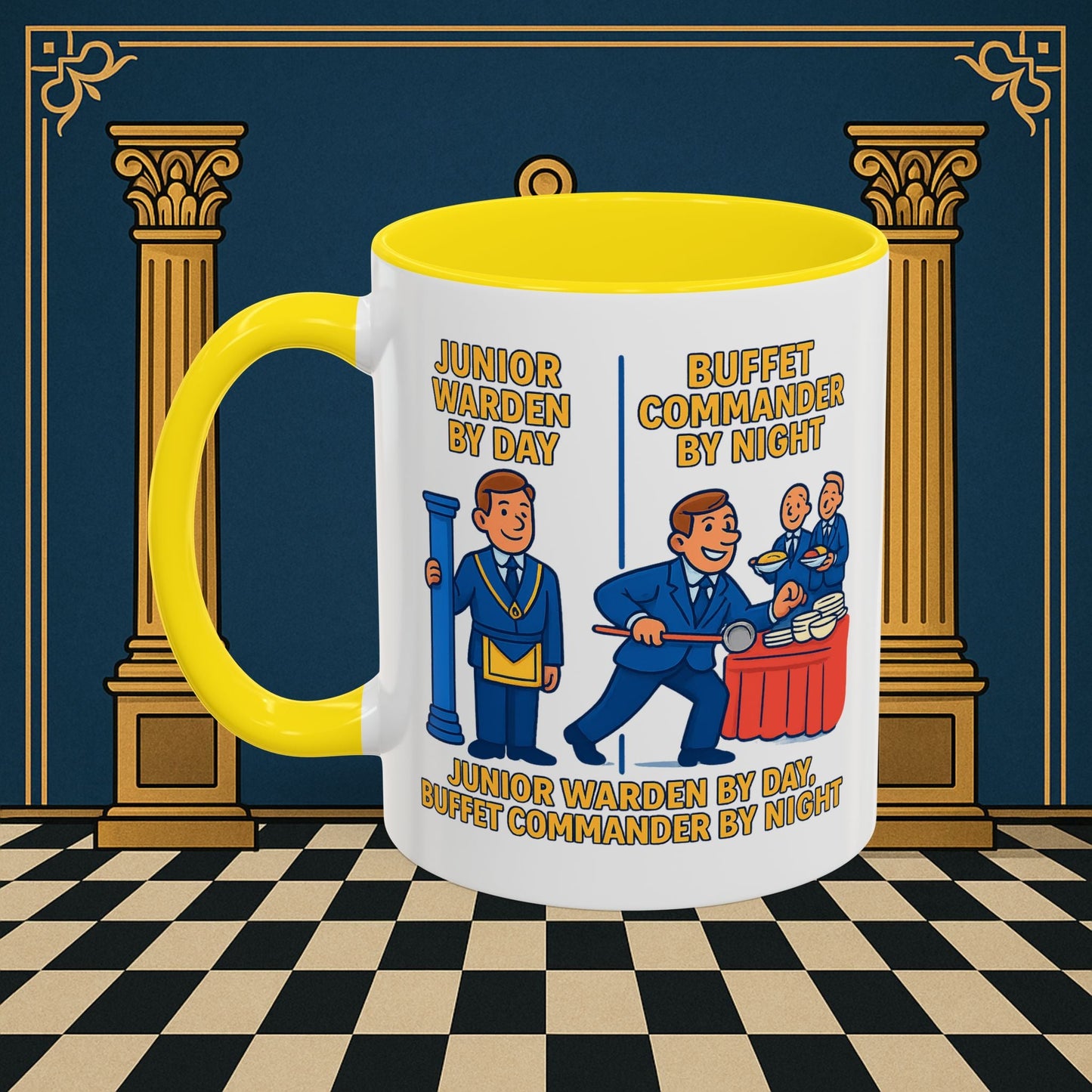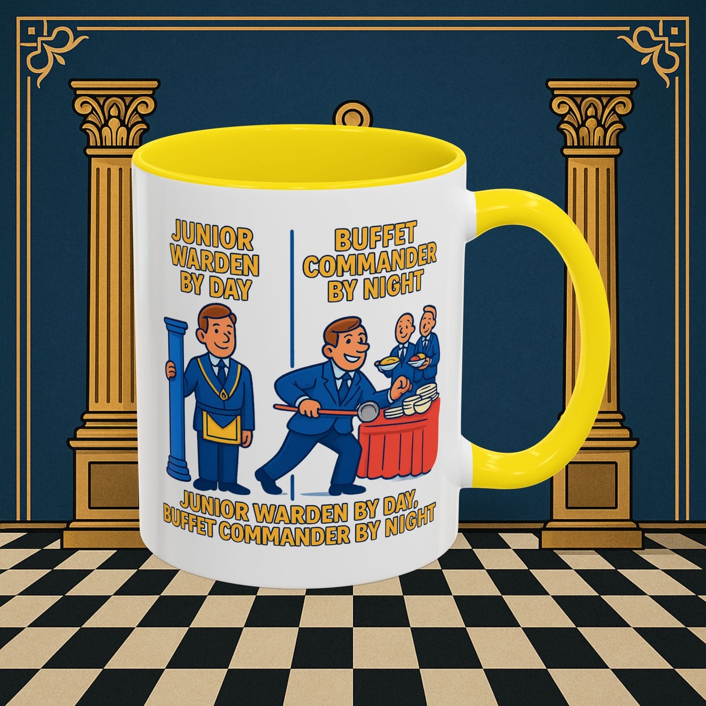 Premium Ready to Go Freemason Design | Day/Night Professional: Dual Persona Comic Illustration, Junior Warden