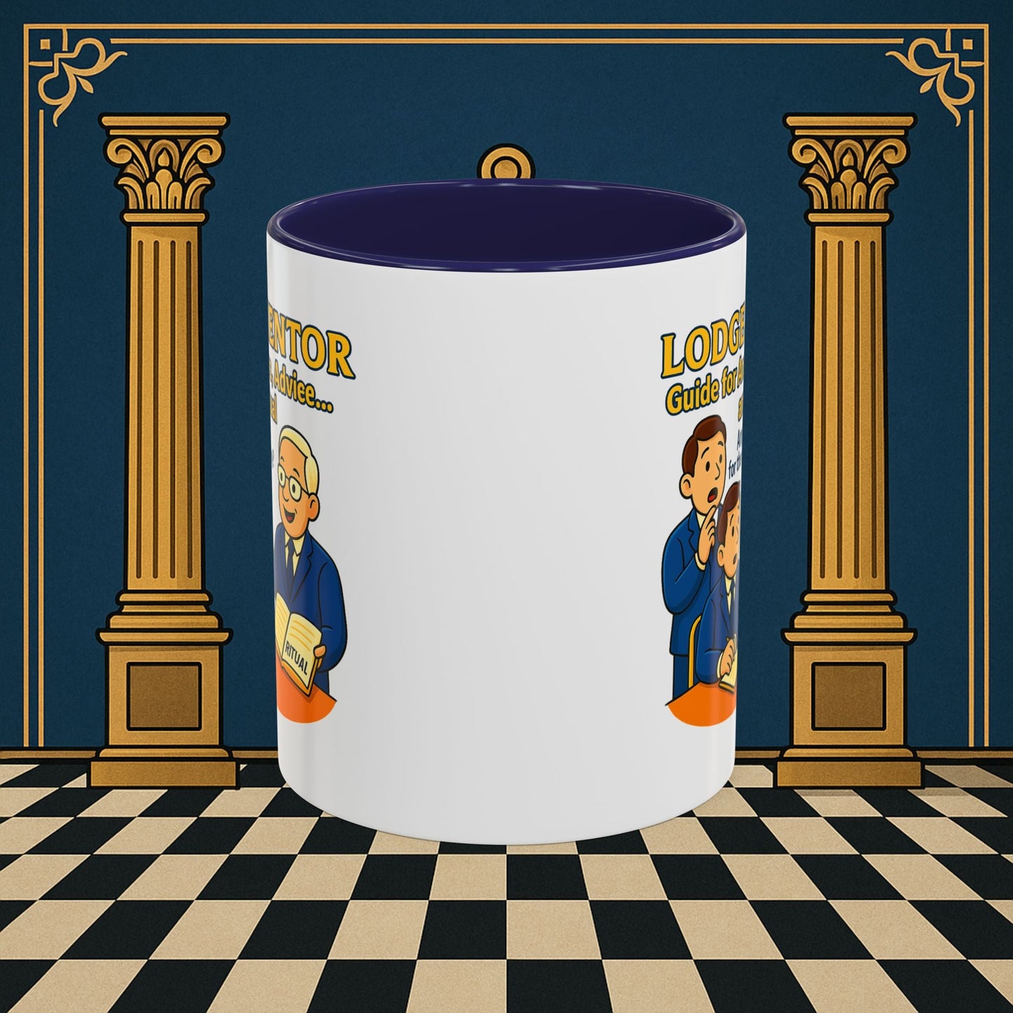 Premium Personalised Freemason Colour Rim Mug - Membership Officer Design Offering support and resources for newcomers