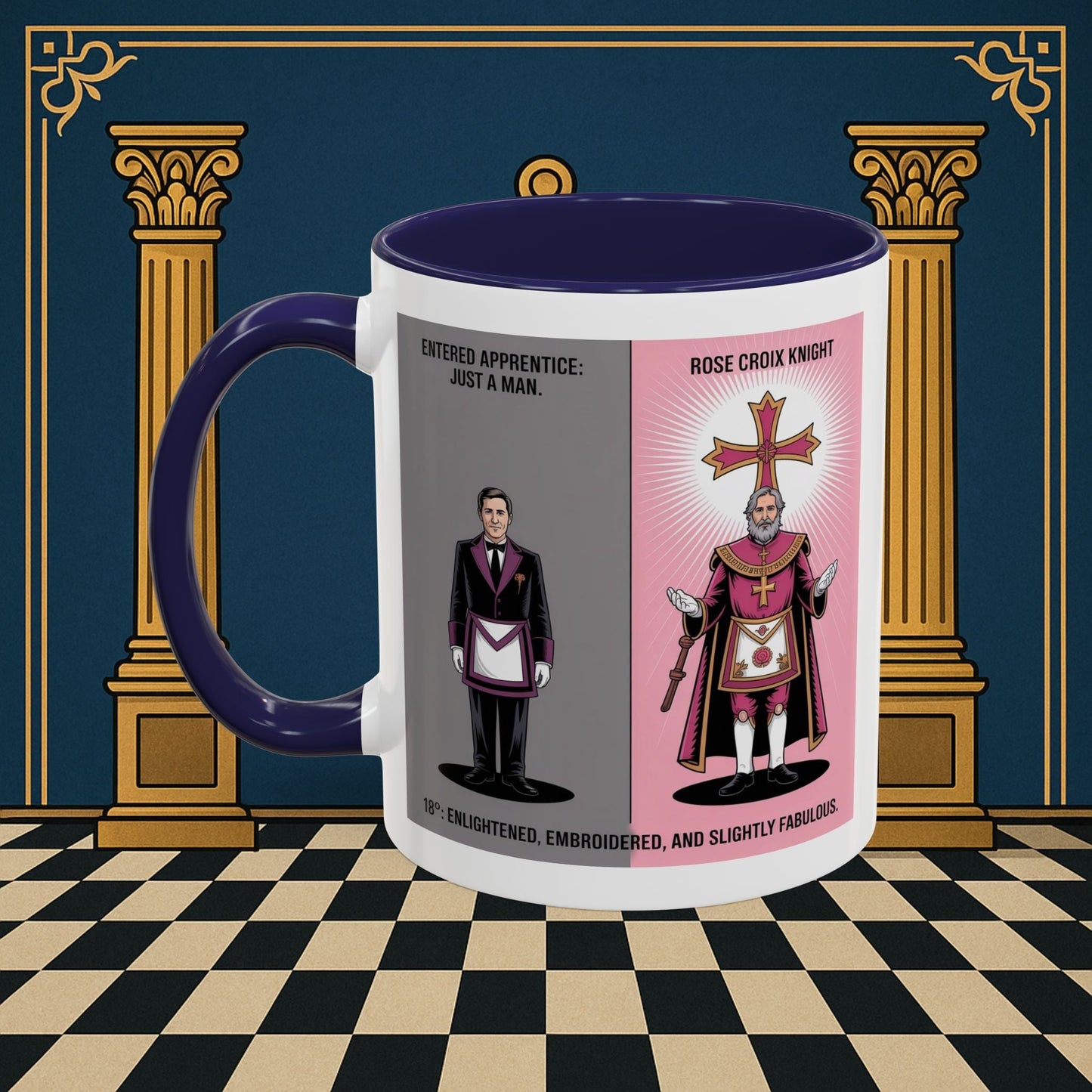 Premium Personalised Freemason Colour Rim Mug - Membership Officer Design - Yes you do have to learn the whole charge