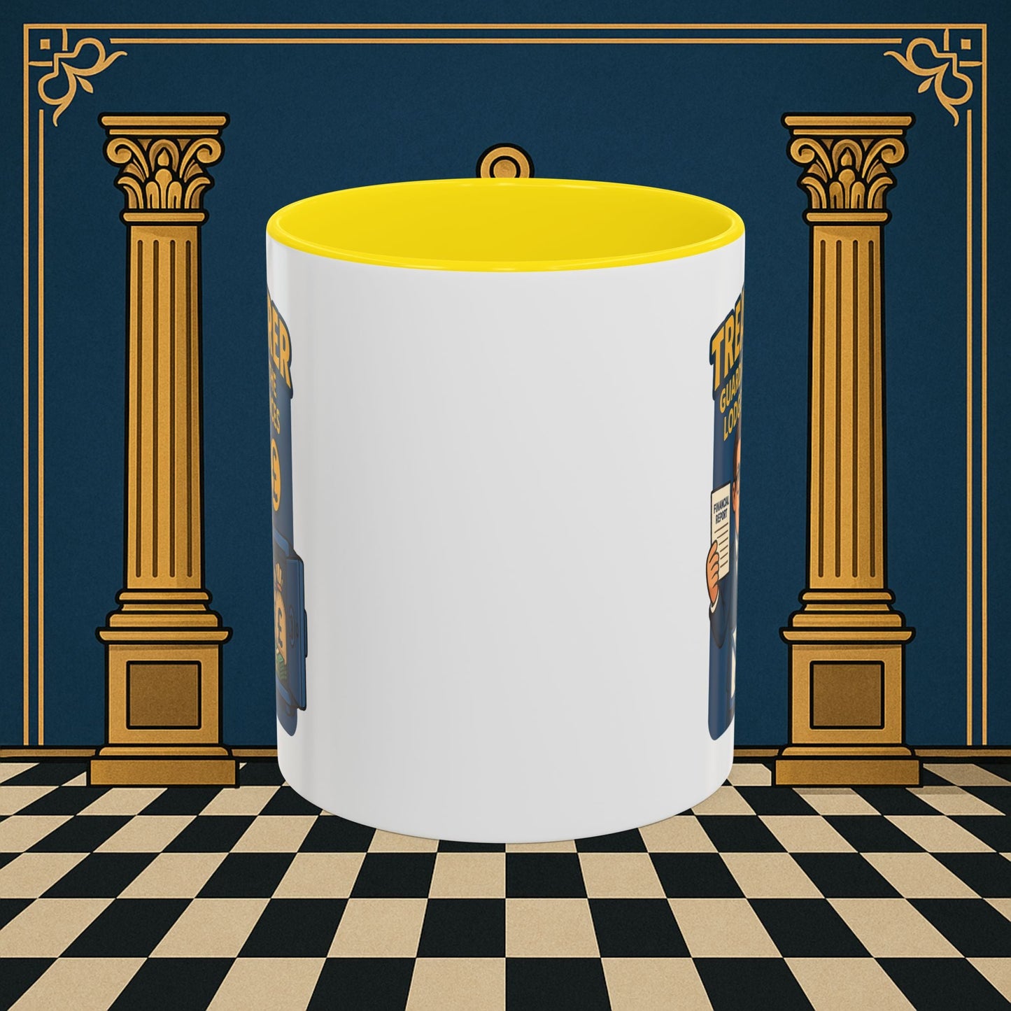 Premium Personalised Freemason Colour Rim Mug - Membership Officer Design - Yes you do have to learn the whole charge