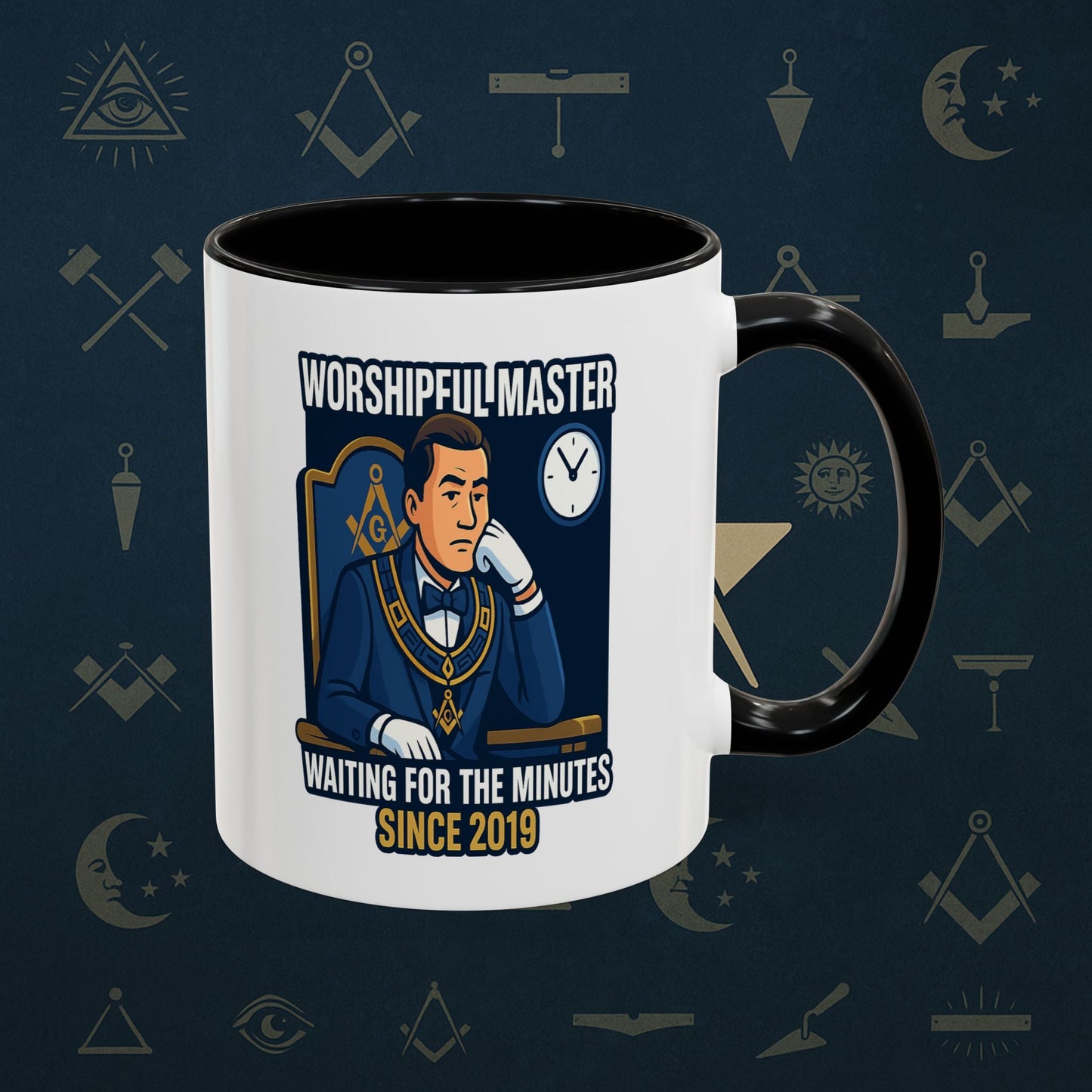 Premium Personalised Freemason Colour Rim Mug - Membership Officer Design - Yes you do have to learn the whole charge