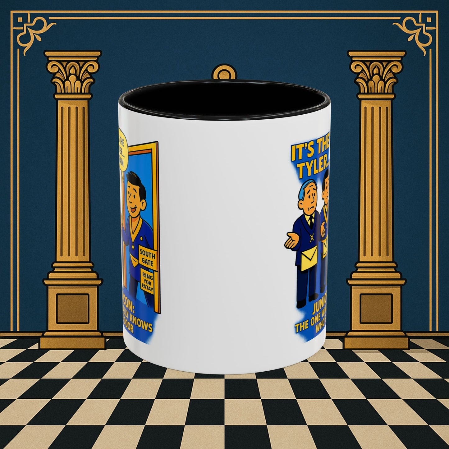 Premium Personalised Freemason Colour Rim Mug - Membership Officer Design - Yes you do have to learn the whole charge