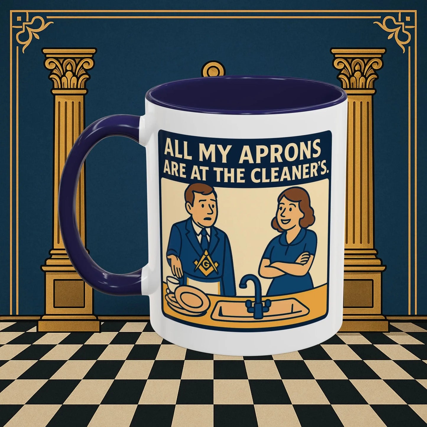 Premium Ready to Go Freemason Design Ready to Go – All My Aprons Are at the Cleaner’s (Accent Coloured 11oz Mug)