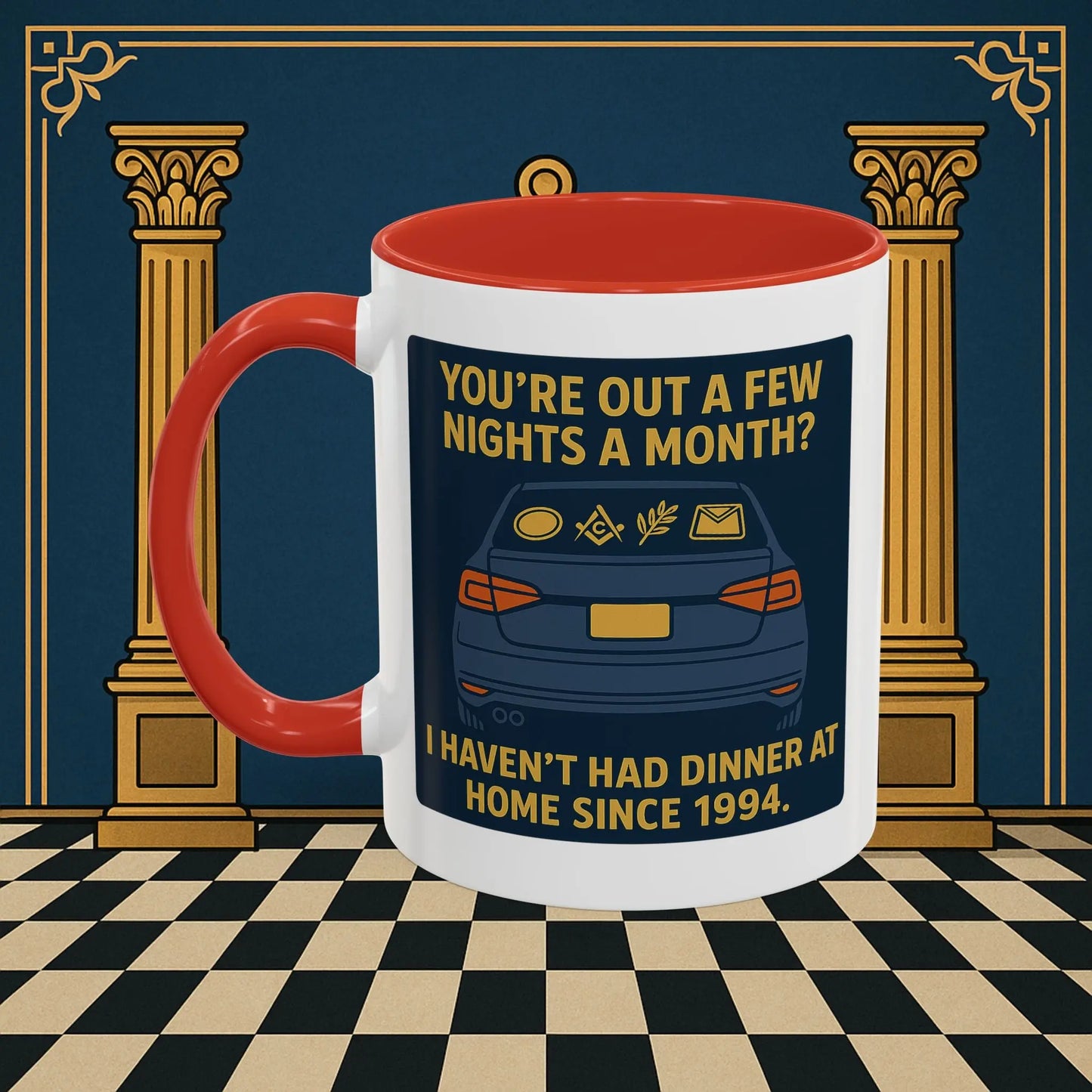 Premium Ready to Go Freemason Design Ready to Go – Dinner at Home? Never Heard of It (Accent Coloured 11oz Mug)