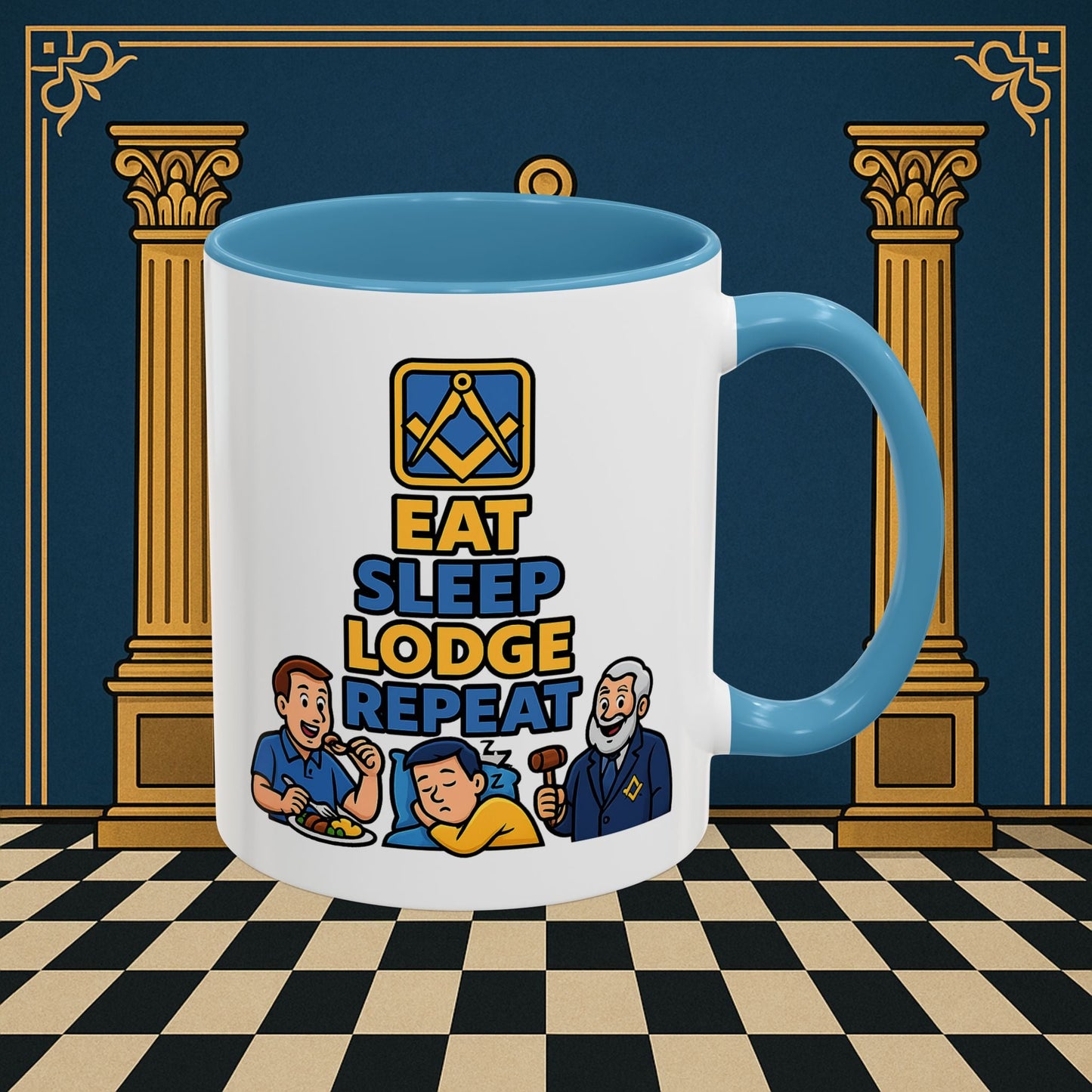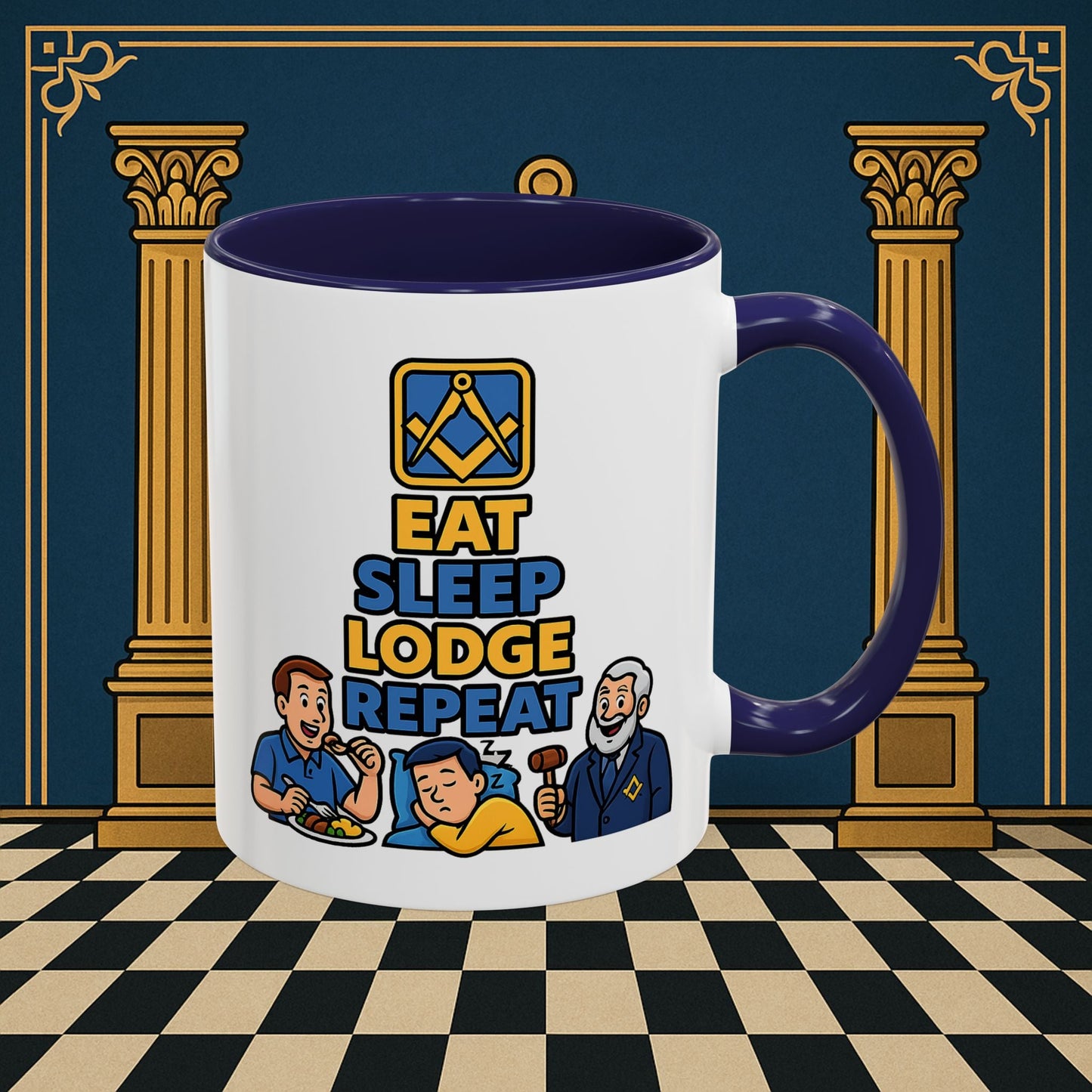 Premium Ready to Go Freemason Design Ready to Go – Eat Sleep Lodge Repeat (Accent Coloured 11oz Mug)