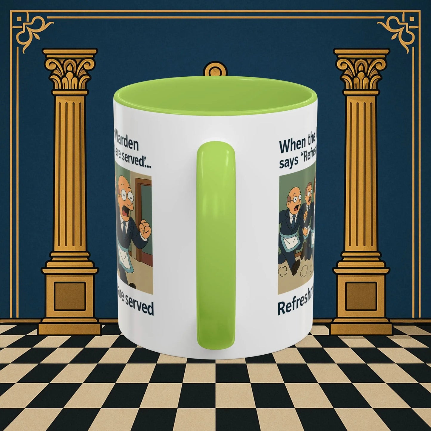 Premium Ready to Go Freemason Design Ready to Go – Refreshments Are Served (Accent Coloured 11oz Mug)