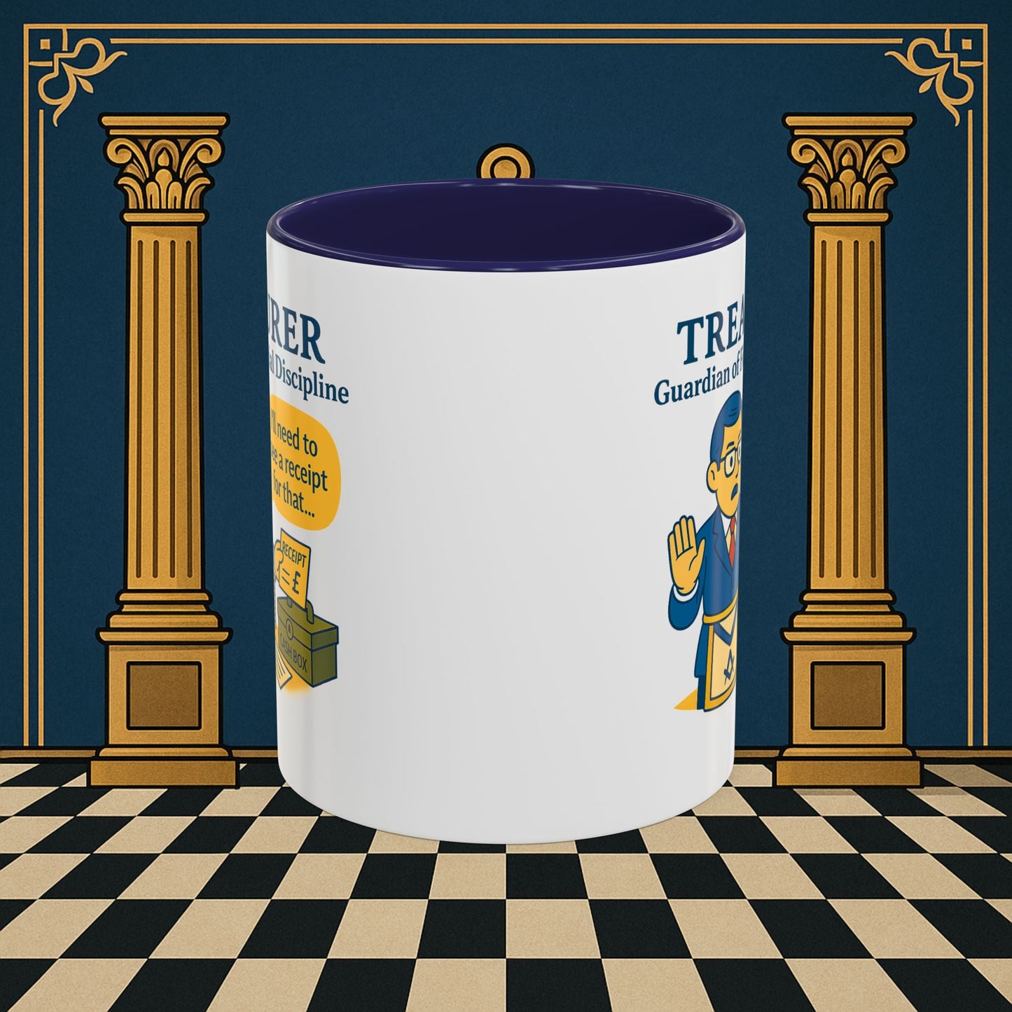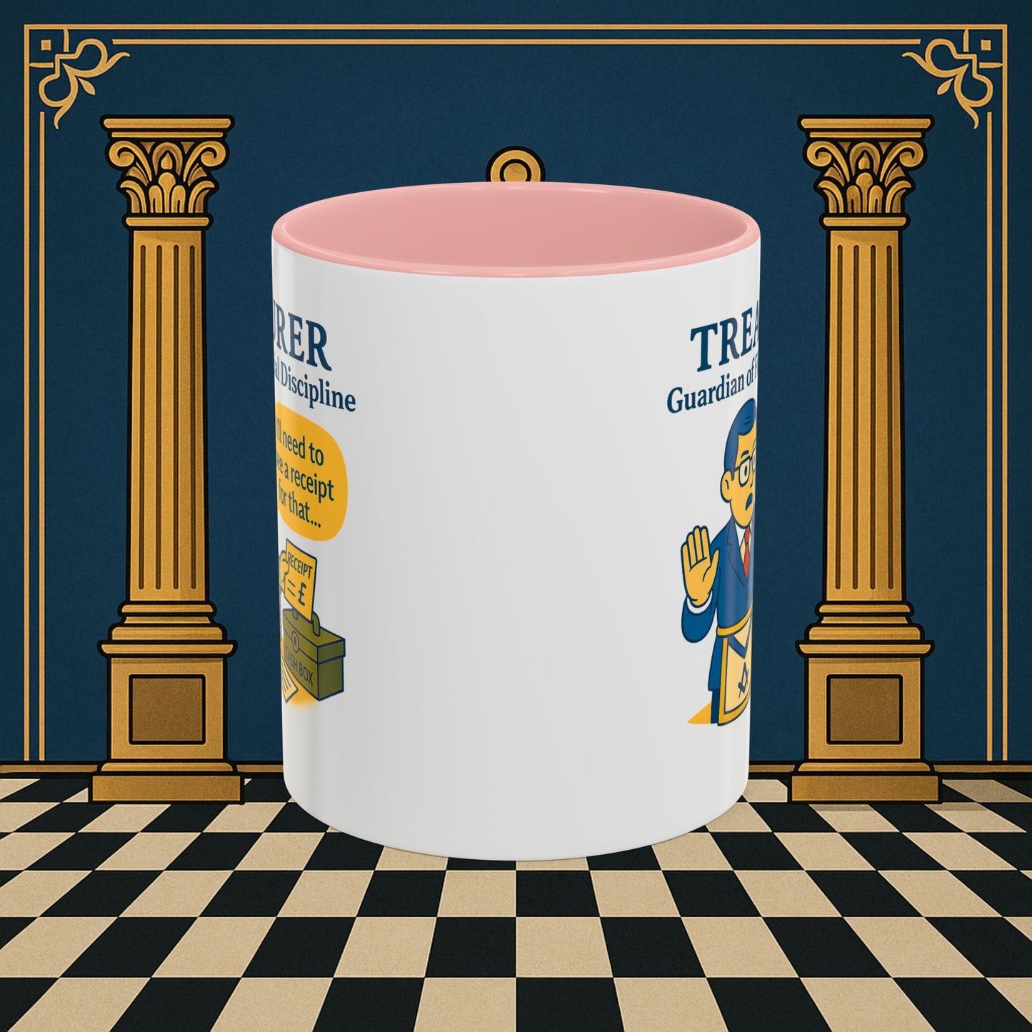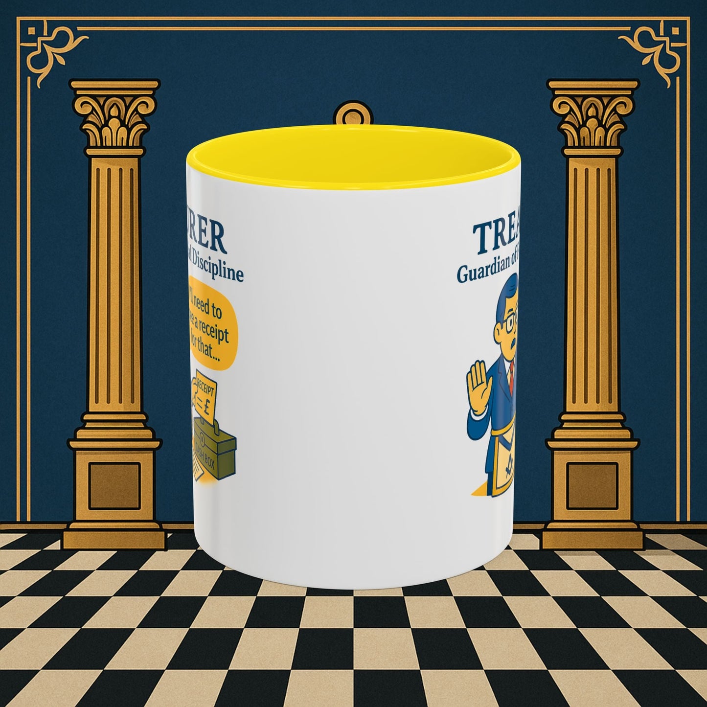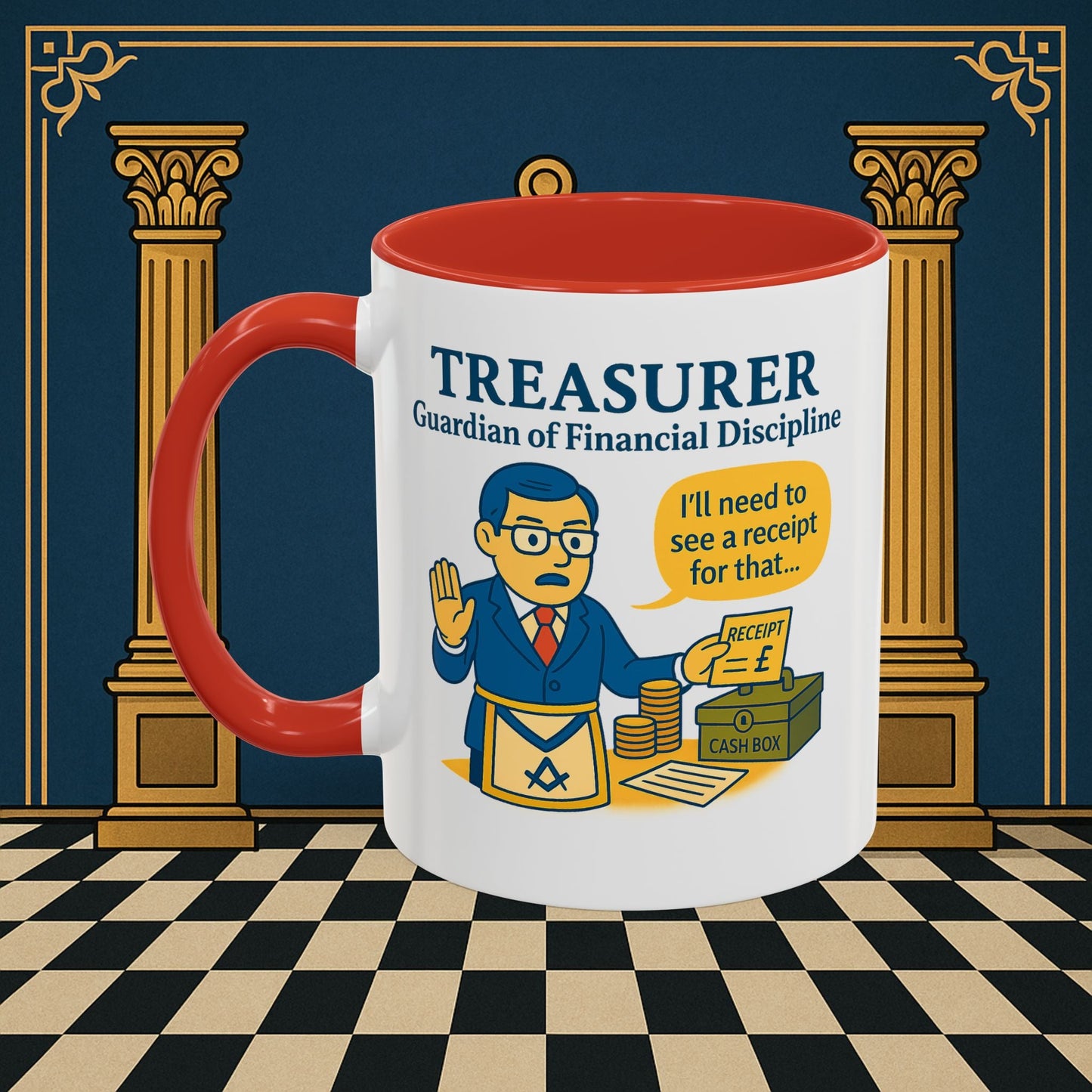 Premium Personalised Freemason Colour Rim Mug - Membership Officer Design - Yes you do have to learn the whole charge
