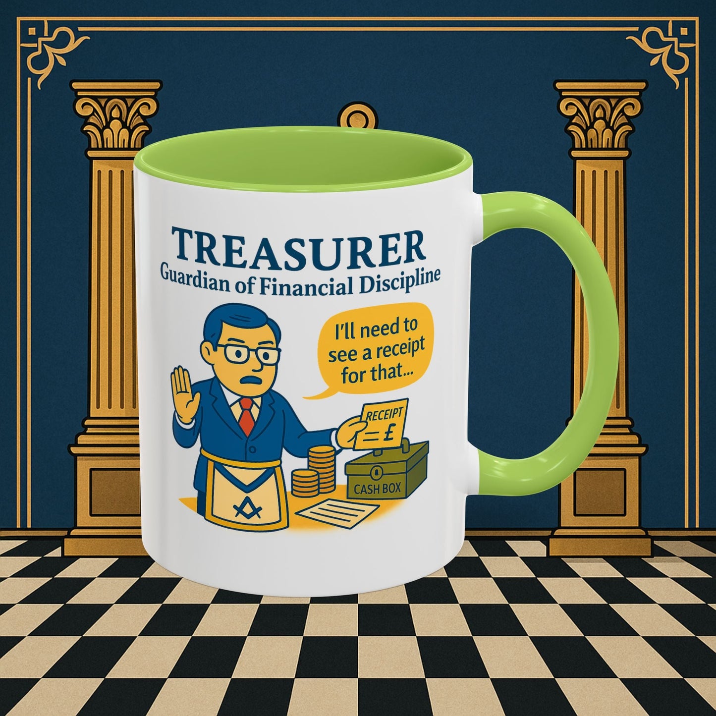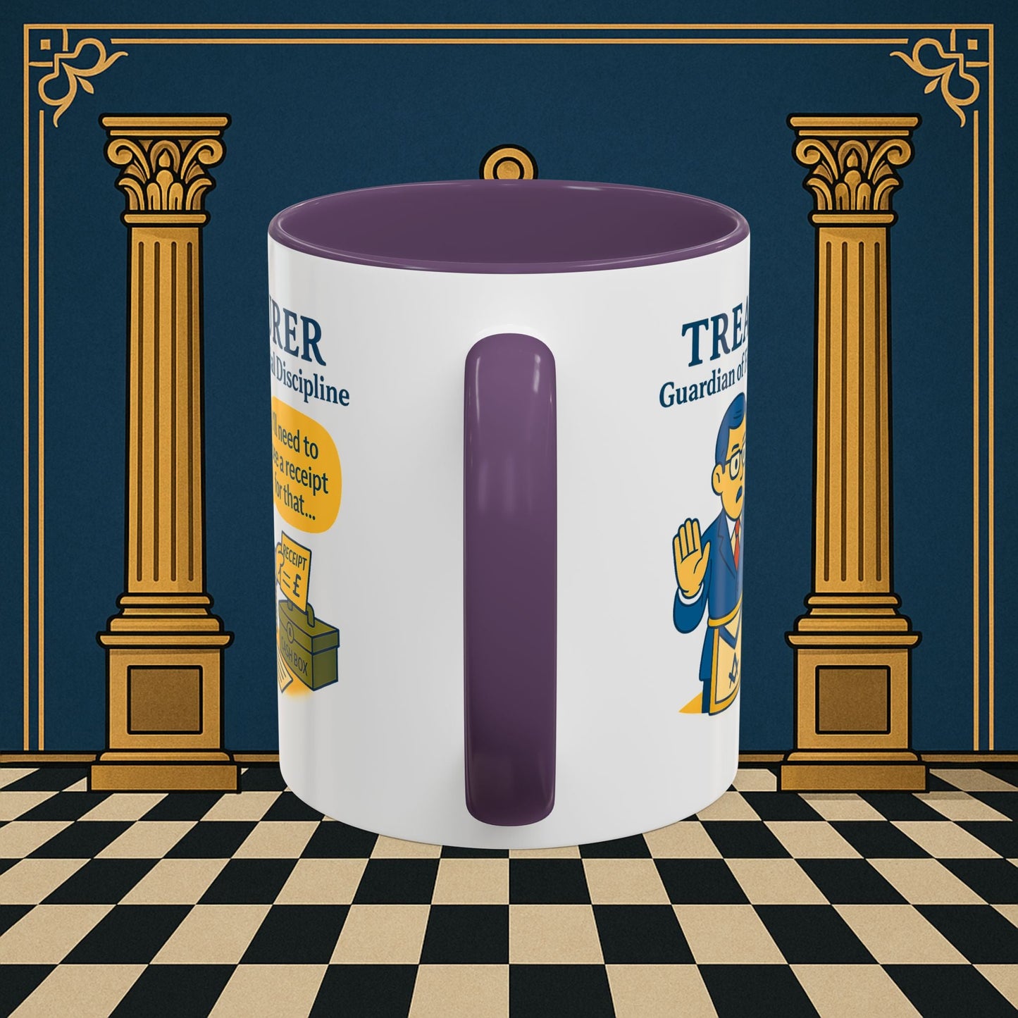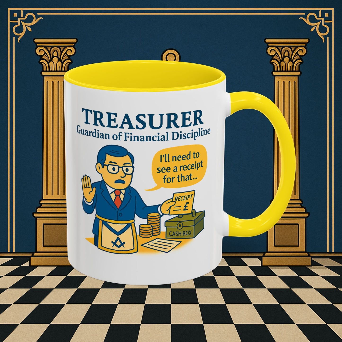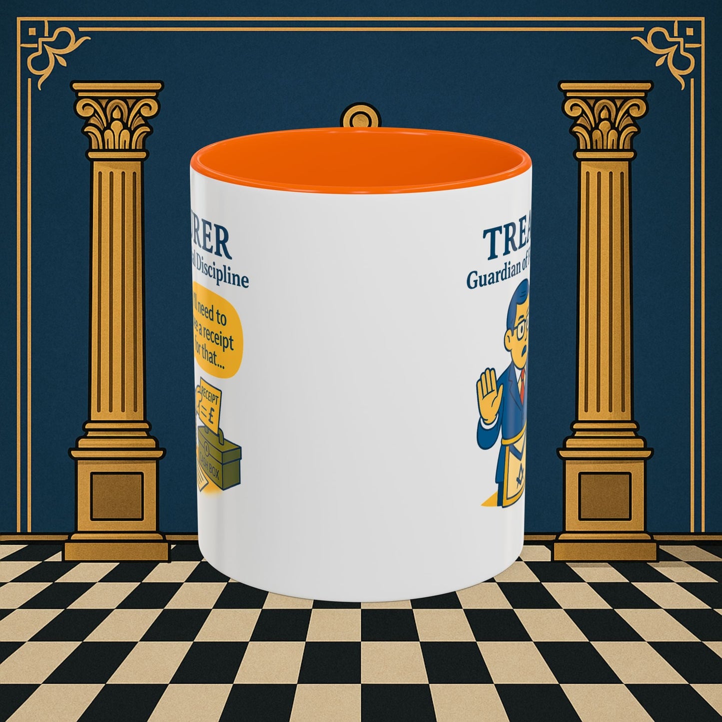Premium Personalised Freemason Colour Rim Mug - Membership Officer Design - Yes you do have to learn the whole charge